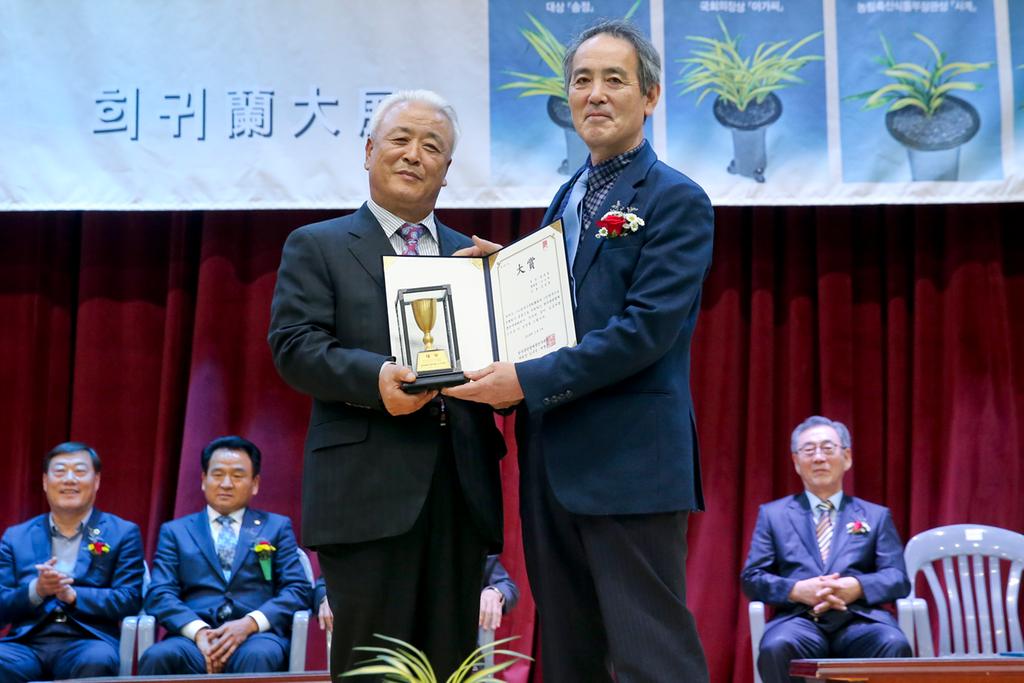 올해로 25회째를 맞이한 한국춘란엽예품 전국대회는 춘란 재배자들에겐 뛰어난 춘란 엽예품의 가치를 인정받는 등용문으로 인식되고 있다. 올해 시상금 1000만원의 대상 영예는 ‘아가씨(품명 중투호)’를 출품한 김송재, 특별대상은 신라(품명 단엽복륜)를 출품한 최병구, 합천군수상은 ‘송정(품명 중투호)’을 출품한 김영동 등 총 98점이 수상을 받았다.