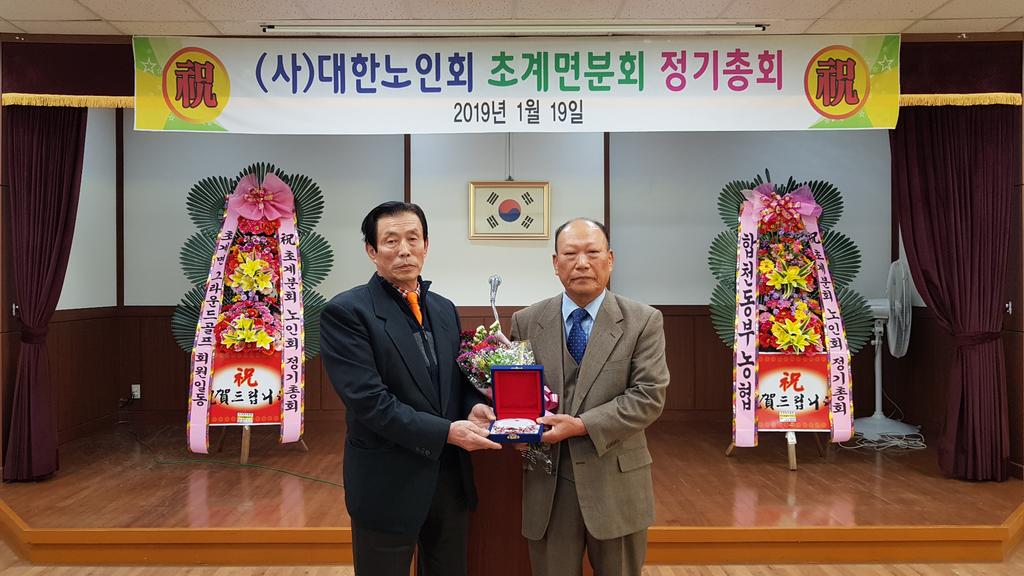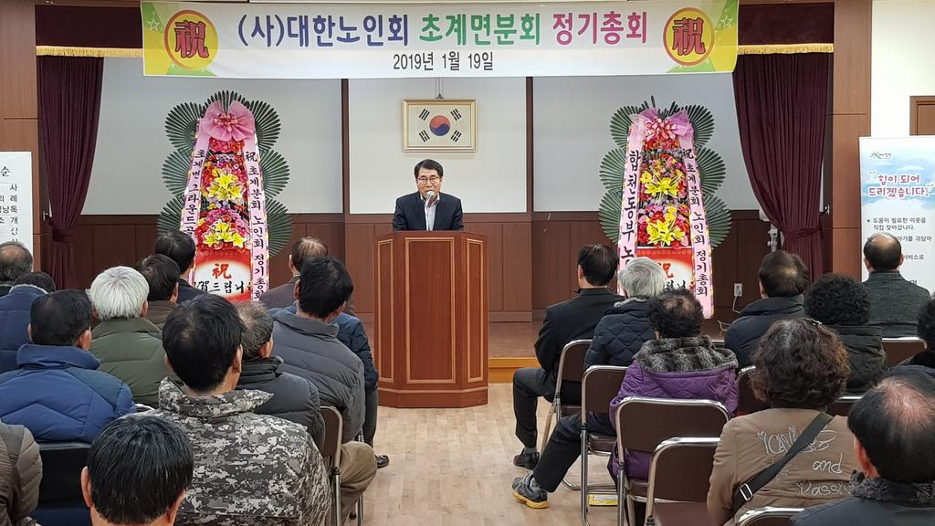 대한노인회 초계면분회(회장 이용옥)는 지난 19일 초계면 노인복지회관 2층 회의실에서 마을경로당 회장, 총무 및 문준희 군수, 석만진 군의장, 김윤철 도의원,정봉훈 군의원, 이성출 노인회 합천군지회장, 강창념 면장을 비롯한 관내 기관․단체장 등 60이 참석한 가운데 2019년 정기총회를 개최했다.