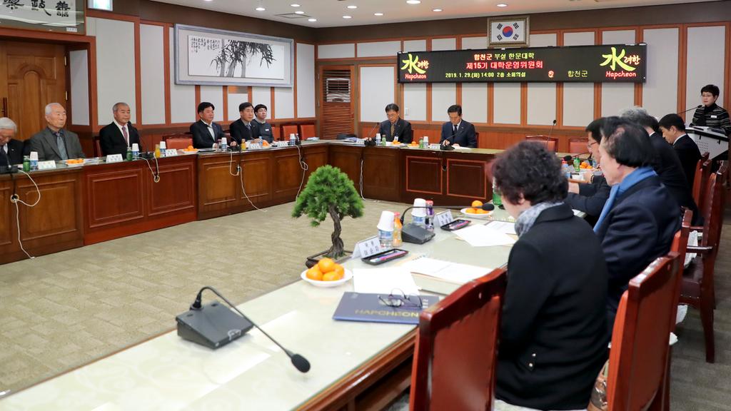 합천군(군수 문준희)은 지난 29일 군청 소회의실에서 합천군 부설 한문대학 학사운영 전반에 대한 심의를 위해 위원장인 군수를 포함한 13명이 참석한 가운데 제15기 대학운영위원회를 개최하였다.