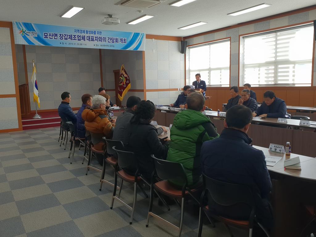 합천 묘산면(면장 윤종철)에서는 지난 29일 면사무소 회의실에서 윤종철 면장, 신명기 군의회 산업건설위원장, 군 담당부서 공무원, 장갑제조업체 대표자 등 20여명이 참석한 가운데 간담회를 개최했다.