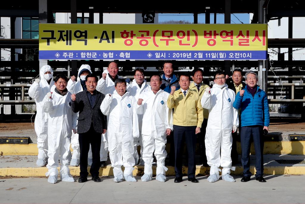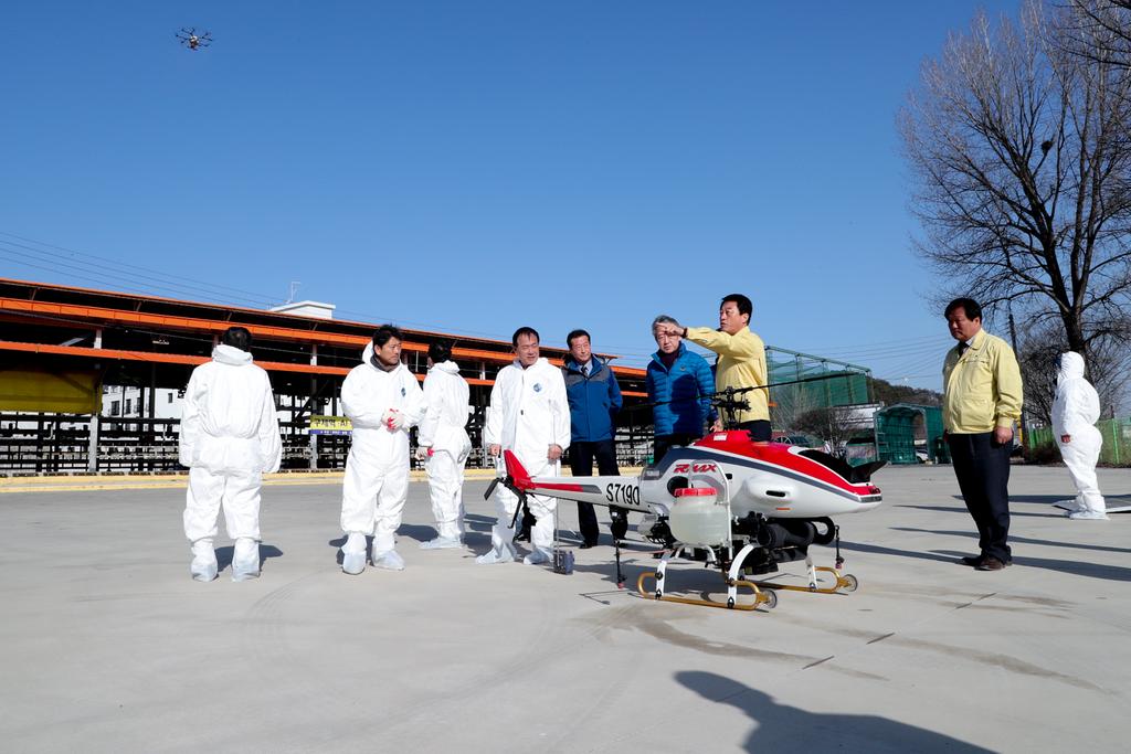 합천군농업기술센터 축산과에서 주관한 합동방역에는 무인헬기 2대, 드론 1대, 공동방제단 방역차량 10대를 투입하여 구제역·AI 예방에 만전을 기했다.