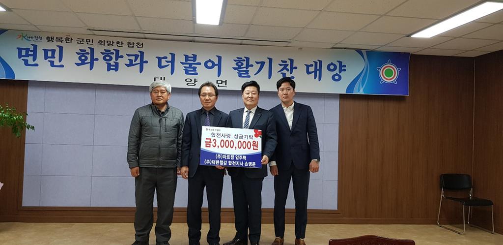 ㈜ 아트캠, 대양면에 이웃돕기 성금 300만원 기탁