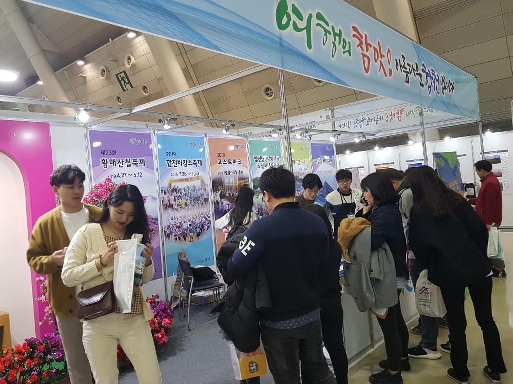 합천군(군수 문준희)은 3월 22일부터 24일까지 3일간 창원컨벤션센터 제1전시장에서 경상남도와 창원시가 주최하고 경남관광박람회사무국이 주관하는 ‘2019 경남관광박람회’에 참가해 합천 관광자원을 알리는 합천 관광 홍보관을 운영했다고 밝혔다.