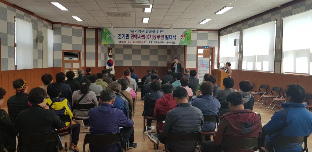 초계면(면장 강창념)은 지난 26일 면사무소 2층 회의실에서 60여명이 참석한 가운데 초계면 명예사회복지공무원 발대식을 가졌다.