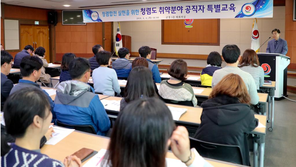 합천군은 4일 군청 3층 대회의실에서 공사․계약 및 인․허가 업무담당자를 포함한 공무원 100여명이 참석한 가운데 ‘공직자 청렴 특별교육’을 실시했다.