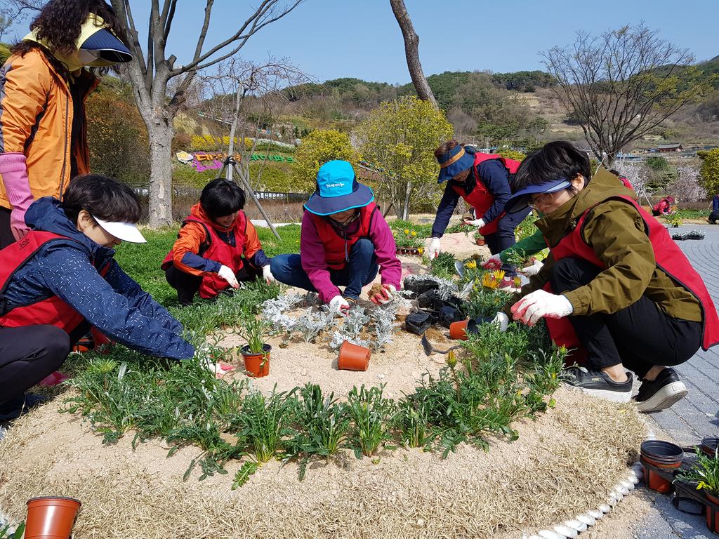 합천군 여성단체협의회(회장 이순자)는 지난 9일 회원 30여 명이 참여한 가운데 합천군 내 주요관광지인 대장경테마파크 내 화단에 봄꽃 식재 봉사활동을 펼쳤다.