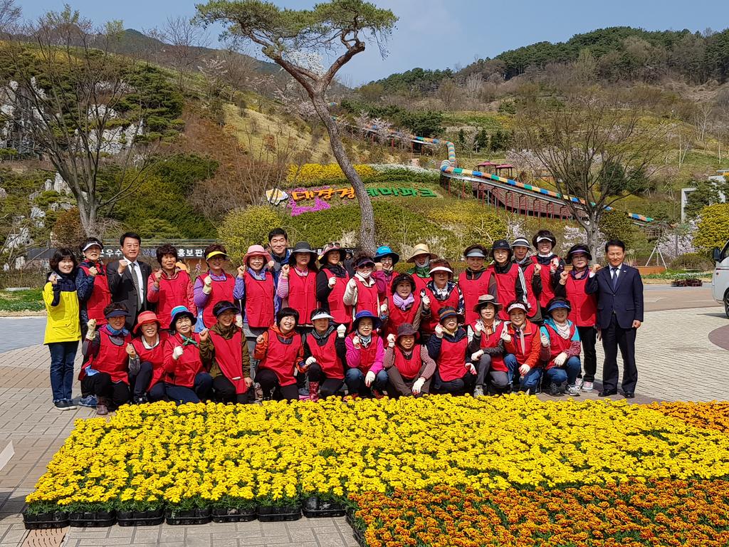 이날 회원들은 봄을 맞이해 관람객에게 다양한 볼거리를 제공하고자 테마파크 내 주요 화단에 가자니아, 메리골드 등 봄꽃 45,000본을 식재하며 구슬땀을 흘렸다.