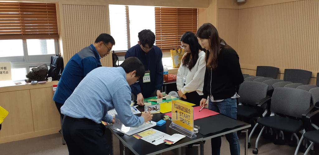 이날 ▶ 현장응급의료소 운영교육 ▶ 국내재난 대응 사례 ▶ 중증도 분류(이론과 실습) ▶ 다수사상자 발생 대비 도상훈련 등 이론과 실습을 병행한 교육으로 진행했다.