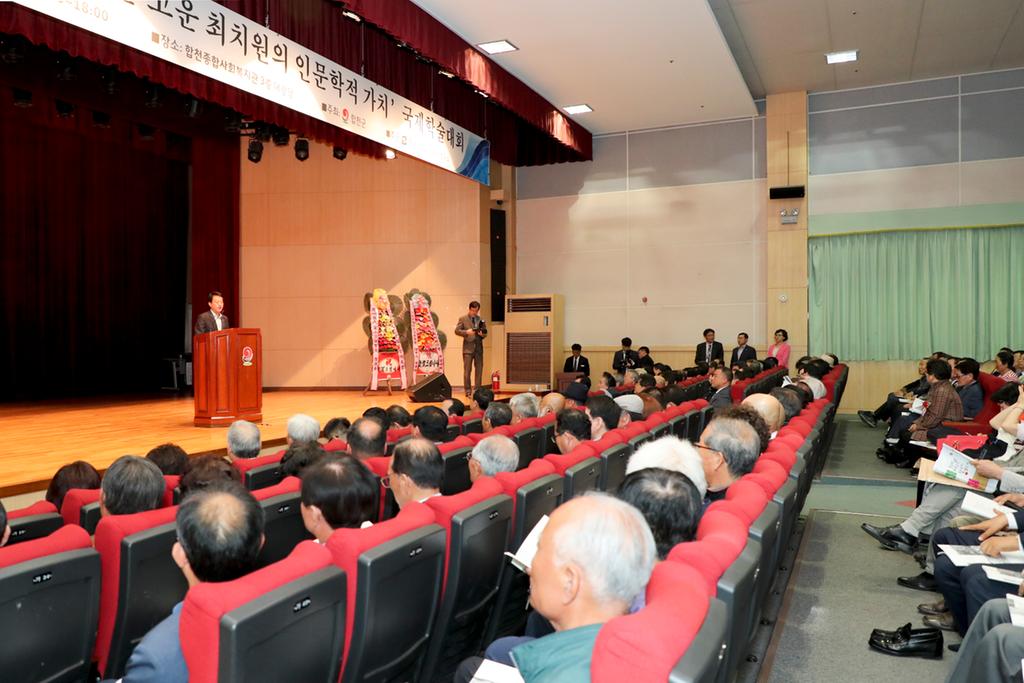 합천군이 주최하고 경남대학교 고운학연구소가 주관하는 <가야산이 품은 고운 최치원의 인문학적 가치>에 대한 국제학술대회가 지난 8일 문준희 합천군수와 석만진 합천군의회 의장 등 합천군 관계자와 300여 명이 청중이 참가한 가운데 합천사회종합복지관 대강당에서 열렸다.