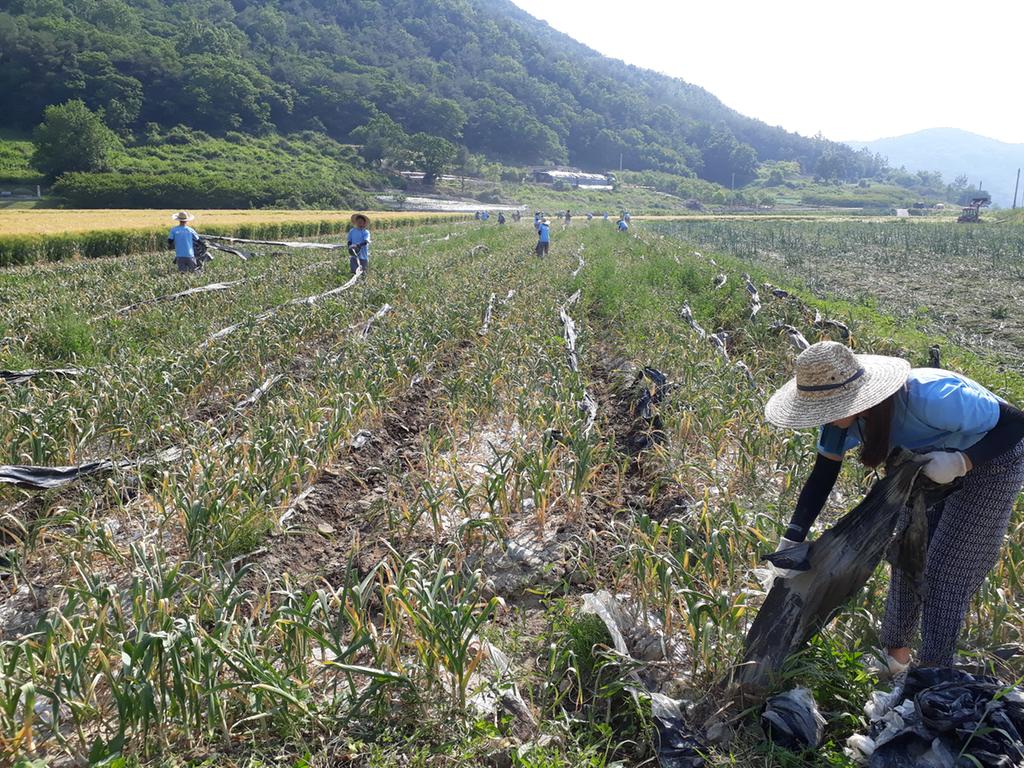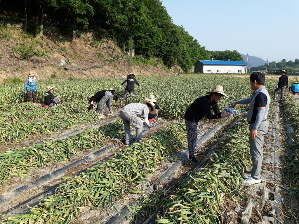 - 마늘 수확 일손돕기에 구슬땀 흘려 -