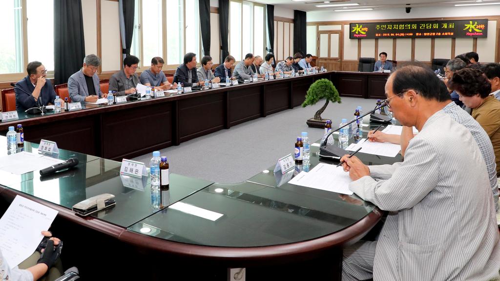 합천군은 지난 4일 군청 소회의실에서 문준희 합천군수, 읍·면 주민자치위원회 임원(위원장 및 간사), 군 관계자 등 40여명이 참석한 가운데 주민자치협의회 간담회를 개최했다.
