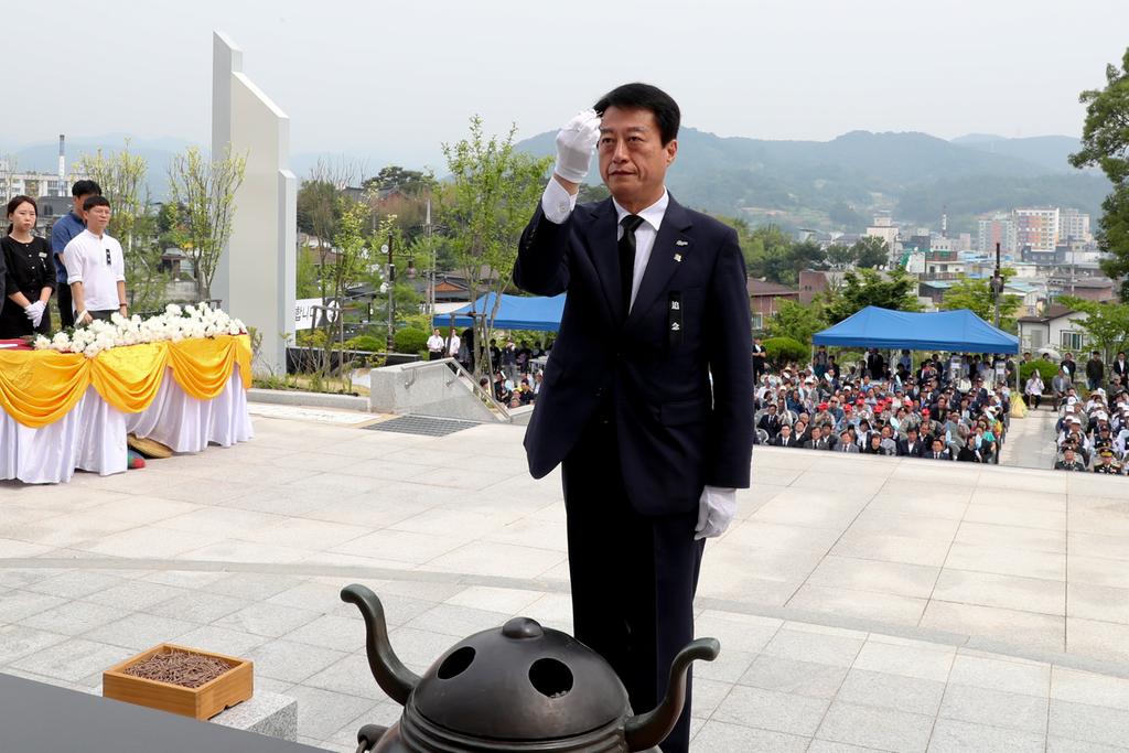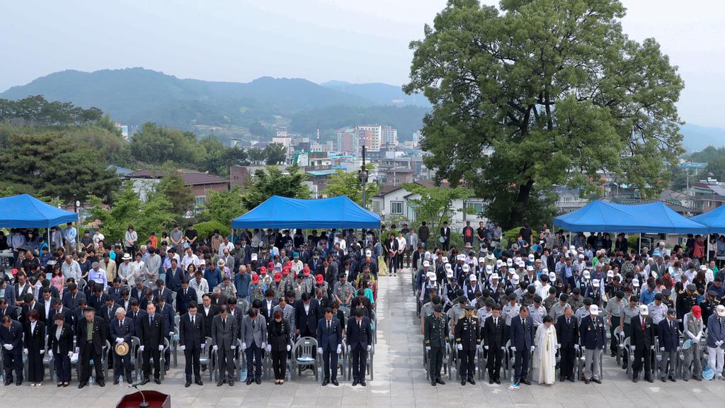 문준희 군수는 추념사를 통해 “제64회 현충일을 맞이하여 순국선열과 호국영령의 거룩한 희생을 기리기 위해 오늘 이 자리에 함께 했으며, 지난 역사를 교훈 삼아 군민 모두가 분열과 갈등을 해소하여 한마음, 한뜻으로 화합하며 소통하는 계기가 되길 바란다.”고 밝혔다.