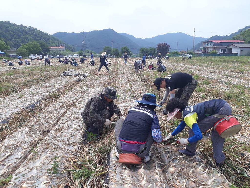 주부민방위기동대 합천군연합회(회장 장외자)와 제5870부대4대대, 군청 안전총괄과에서는 지난 19일 합동으로 합천군 율곡면 노양리 소재 양파농가에 일손돕기를 실시했다.