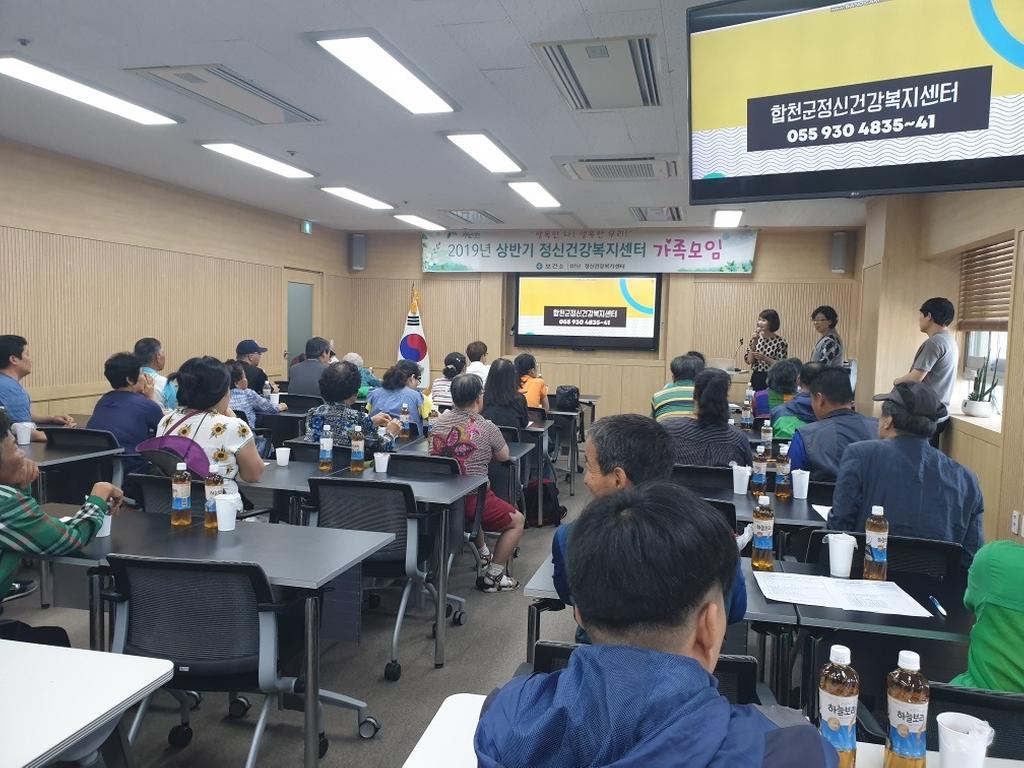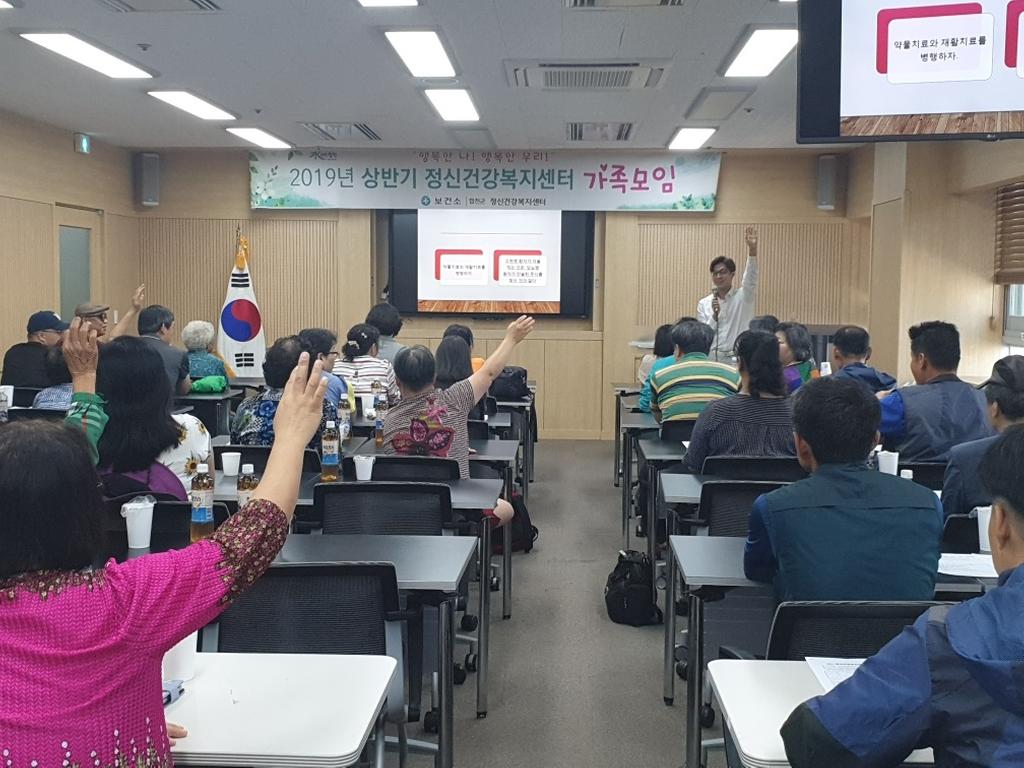 합천군보건소 정신건강복지센터에서는 6월 20일 목요일 합천군보건소 2층 보건교육실에서 정신건강복지센터 등록회원과 가족 등 60여명이 참석한 가운데2019년 상반기 가족모임을 성황리에 개최했다.