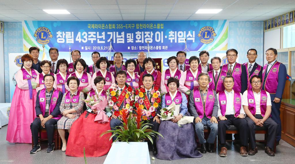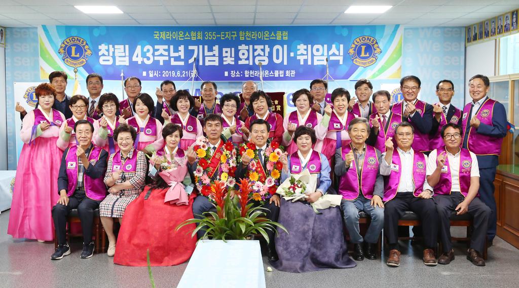 국제라이온스협회 355-E지구 합천라이온스클럽은 지난 21일 합천라이온스클럽회관에서 소속 클럽회원 및 가족 등 50여명이 참석한 가운데 창립 43주년 기념 및 회장 이취임식을 개최하고 전)이진출 회장 뒤를 이어 오종찬 신임회장이 취임했다.