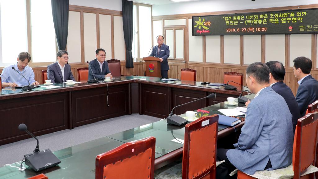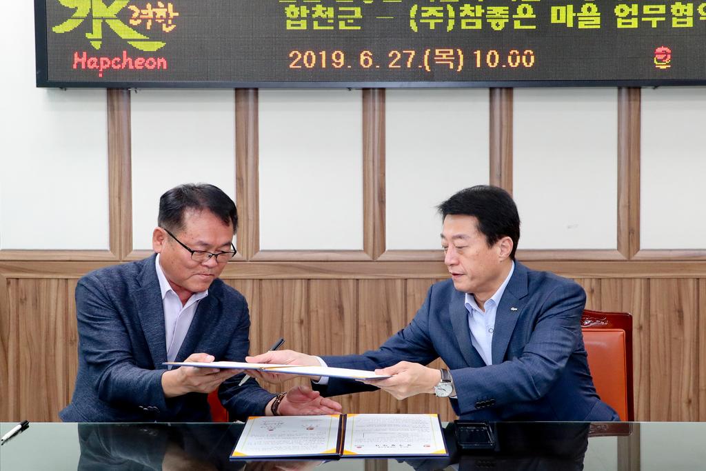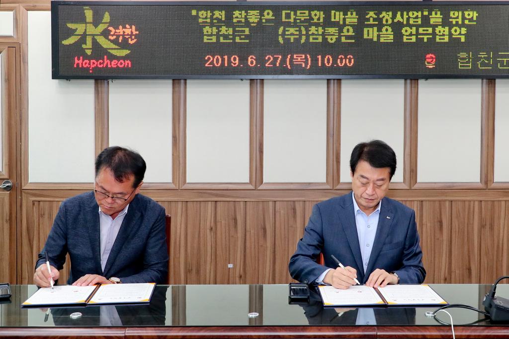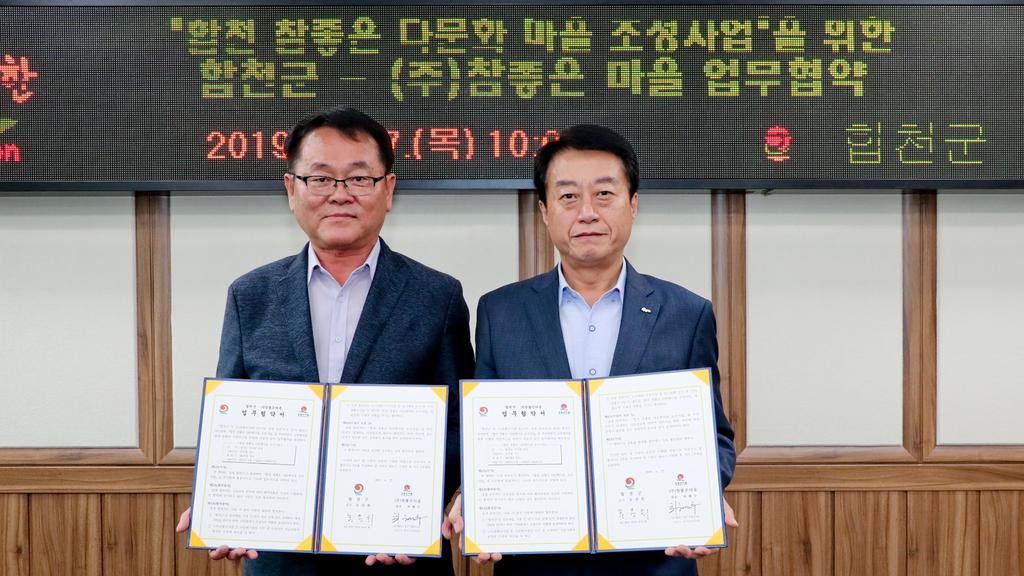 합천군(군수 문준희)과 ㈜참좋은마을(대표 최혜수)은 지난 27일 합천군청 2층 소회의실에서 문준희 군수, 최혜수 대표를 비롯한 관계자 등 10명이 참석한 가운데 ‘합천 참좋은 다문화마을 조성사업을 위한 업무협약’을 체결했다.