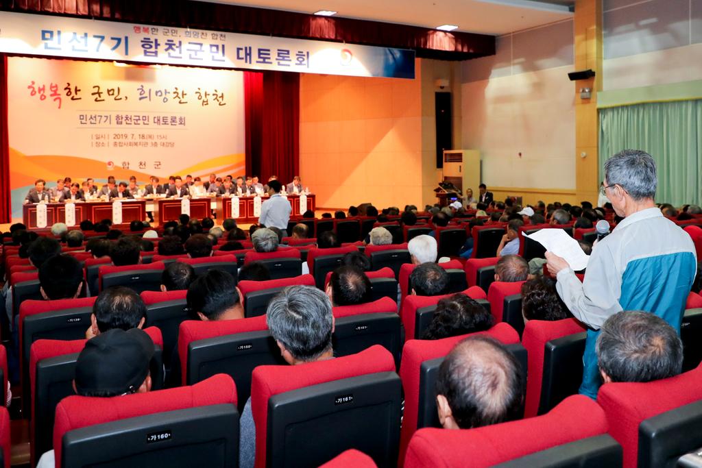 합천군(군수 문준희)은 지난 18일 종합사회복지관 3층 대강당에서 군민 400여명이 참석한 가운데 ‘민선7기 합천군민 대토론회’를 개최했다.