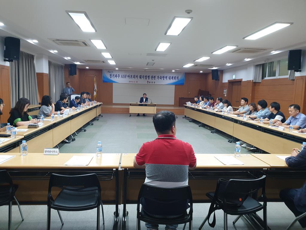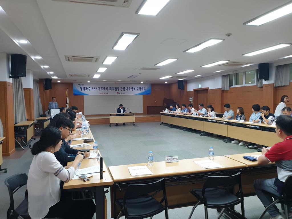 합천군은 최근 경기도 파주시,연천군 양돈농가에서 발생한 아프리카돼지열병(ASF)의 유입 방지를 위하여 지난 9월 18일 전 읍면 산업계장, 담당자 34명과 합동으로 긴급 가축방역 대책 회의를 개최했다.