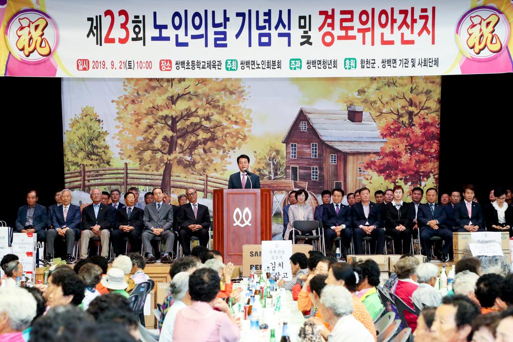 쌍백면 청년회에서 주관하고 쌍백면(면장 최규진)과 대한노인회 쌍백면분회(회장 남철현)에서 주최, 합천군이 후원하는 이날 행사에서는 쌍백면 이상자 어르신이 모범노인으로 군수 표창을 받았으며, 수년간 분회 부회장 및 평지경로당 회장을 맡고 계신 진재조 어르신이 쌍백면분회로부터 감사패를 받았다.