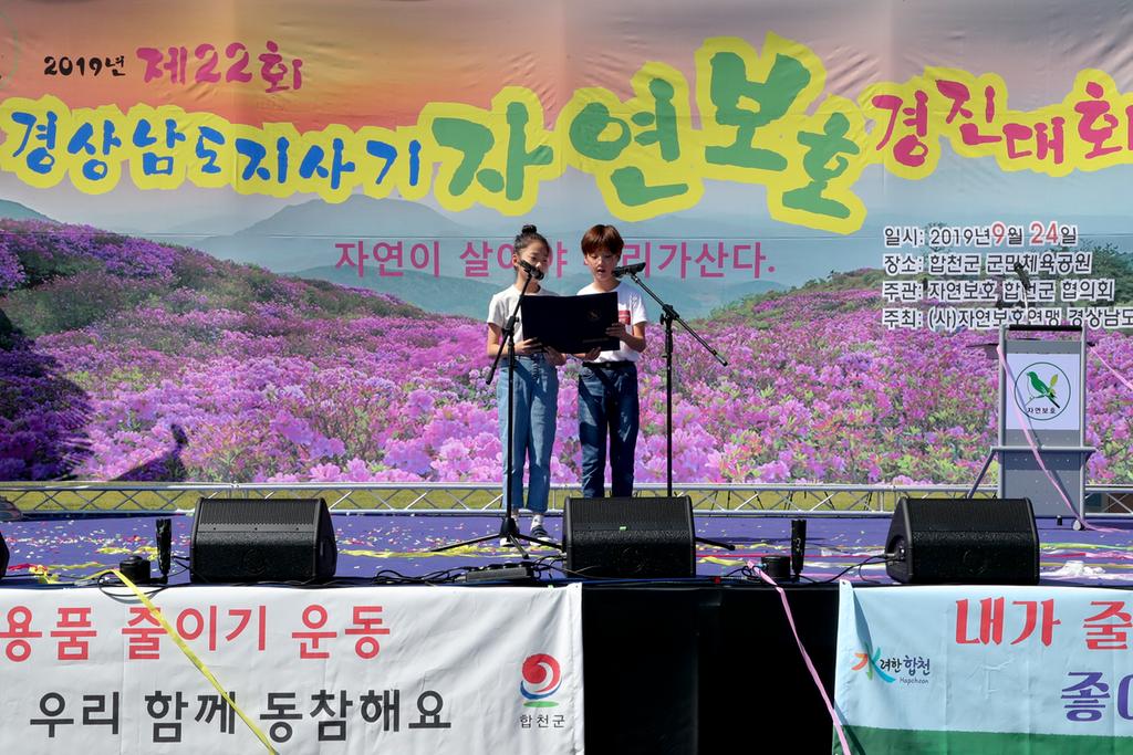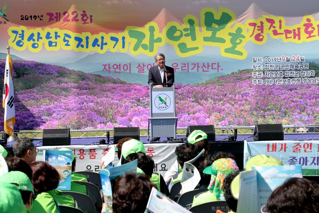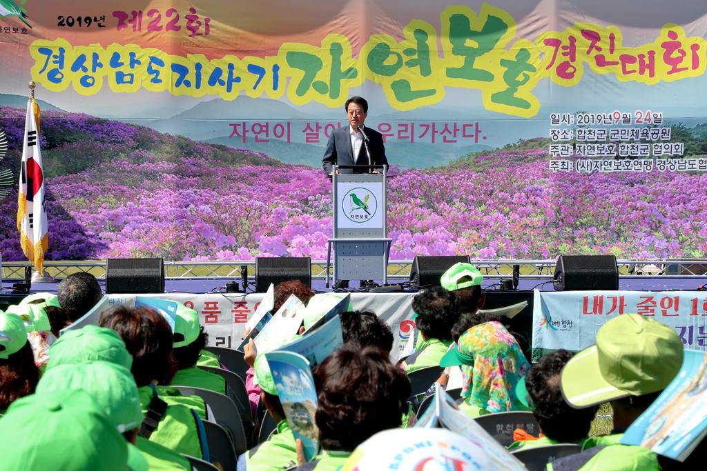 제22회 경상남도지사기 자연보호 경진대회가 지난 24일 합천군 군민체육공원 잔디광장에서 문준희 합천군수, 석만진 군의장, 김윤철 도의원, 박성재 도 환경산림국장, 이재윤 자연보호중앙연맹 총재를 비롯한 경상남도 자연보호협의회 회원 1000여명이 참석한 가운데 개최됐다.