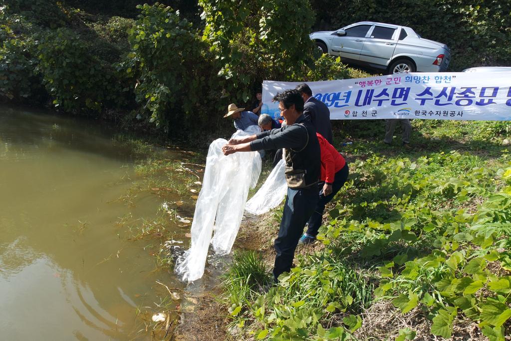 한편 박상배 면장은 “우리나라 강에는 물고기가 없다고 한다. 합천만이 가지고 있는 천혜자원인 1급수 황강에 민물고기가 엄청나던 7080시절로 복원을 추진하는 황강목장화 사업에 적극 동참하기 위하여 군지원으로 이번 사업을 추진하게 되었다.”고 말하며 “이 사업이 성공하여 또다른 농업 소득 창출을 기대한다”고 말했다.