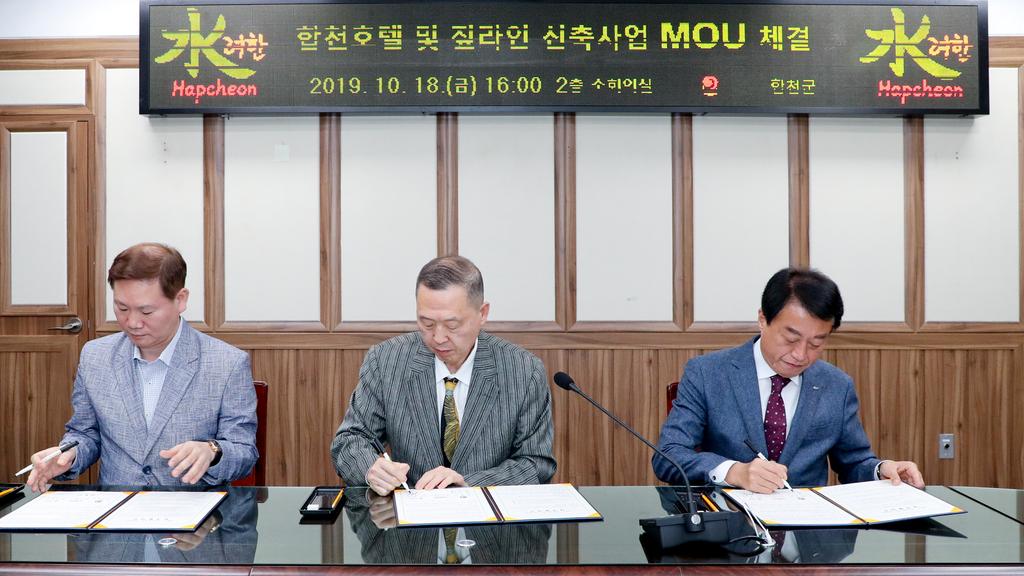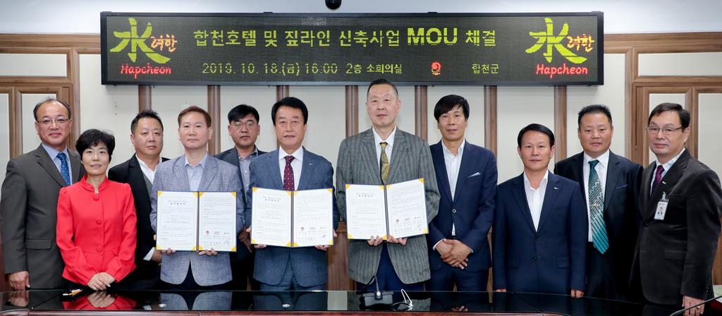 이번 협약은 합천군 용주면 봉기리 일원의 합천보조댐 관광지 내 250실 규모의 호텔건립과 보조댐관광지 주변 짚라인 설치 골자로 하는 내용으로서, 합천군은 호텔건립을 위한 각종 인․허가 처리 등에 있어 최대한 행정지원을 아끼지 않고, 민원발생 시 조정자 역할을 충분히 수행하기로 하였으며, ㈜아이엠코어 와 ㈜아유브는 호텔건립 및 짚라인 시설을 조속히 완공하여 합천 관광브랜드 이미지 제고와 관광산업 활성화에 최선을 다한다는 상호 협력 방안을 담고 있다.