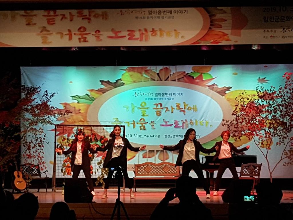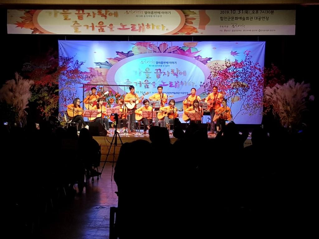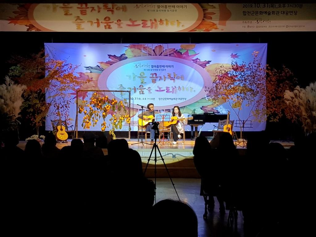 통기타 노래모임인 합천군 음악여행(회장 박상배)이 ‘가을 끝자락에 즐거움을 노래하다’란 주제로 지난 31일 합천군 문화예술회관 대공연장에서 정기공연을 가졌다.