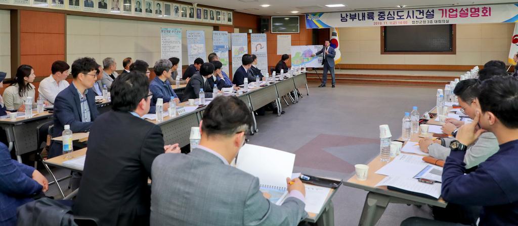 이날 설명회에는 LH공사, GS건설, HDC현대산업개발, SK건설 등 국내굴지의 건설사뿐만 아니라 한국투자증권, 중국자본의 금융업체인 안방그룹 등이 참여해 남부내륙중심도시건설사업에 대한 뜨거운 관심을 보였다.