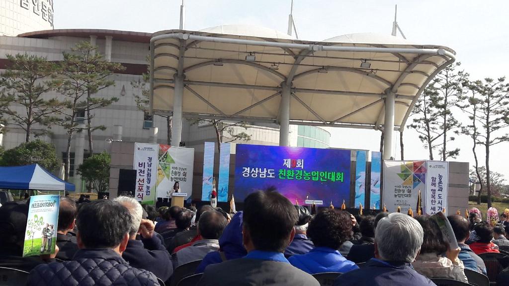 대회는 (사)경남친환경농업인연합회가 주최하는 행사로 경남 친환경농업인 2,000명이 모여 상호정보 교류를 통해 친환경농업 발전방안을 모색, 경남 18개 시군에서 생산한 친환경농산물을 전시홍보, 체육행사 및 어울림한마당 등 다채로운 행사로 진행되었다.