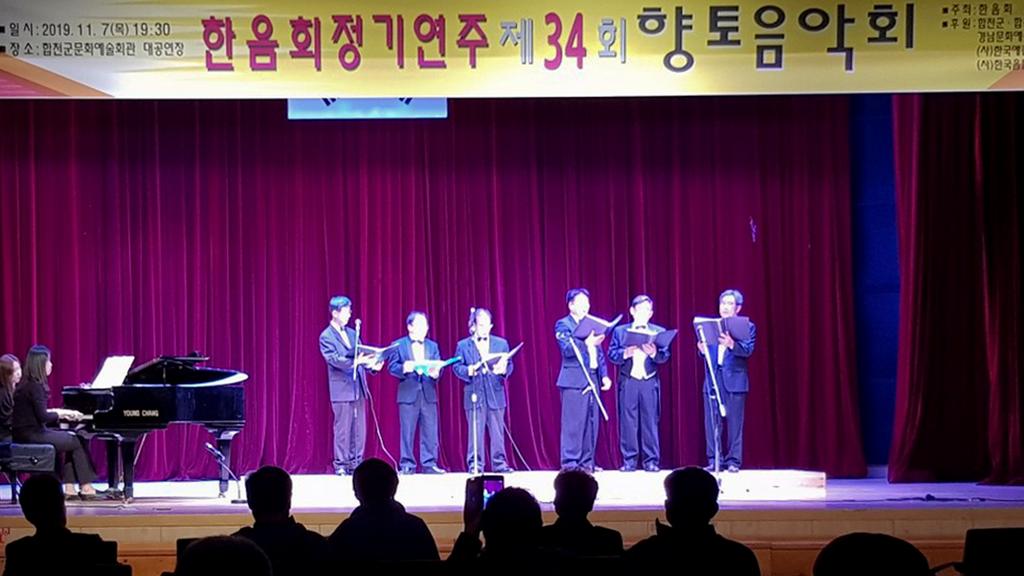 합천군 한음회(회장 김광인)는 지난 7일 제34회 향토음악회 ‘한음회’ 정기공연을 합천군 문화예술회관 대공연장에서 개최했다.