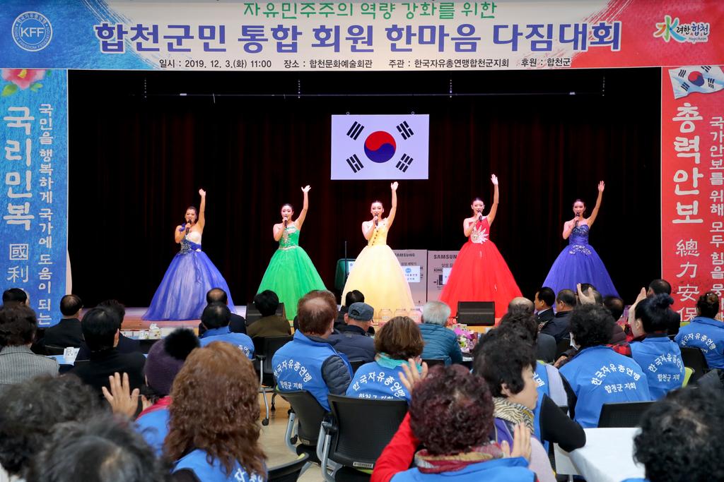 한국자유총연맹합천군지회(회장 차기운)는 지난 3일 오전 11시 문화예술회관에서 문준희 합천군수, 석만진 군의회의장, 김홍식 한국자유총연맹 경상남도지부 사무처장 등 관계 기관․사회단체장, 읍․면 간부 및 연맹회원 등 300여명이 참석한 가운데 2019년 한마음다짐대회를 개최했다.