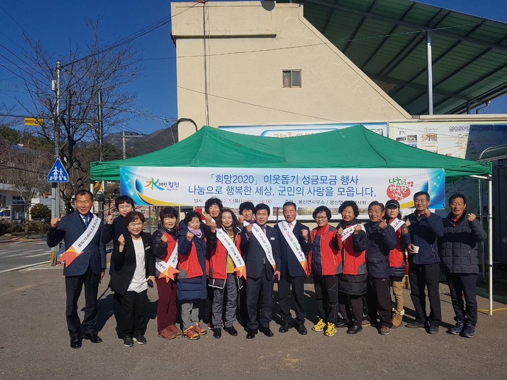 봉산면(면장 김덕호)은 지난 5일 오전 봉산면 버스정류장 앞뜰에서 봉산면장, 유관기관단체장 20명, 자원봉사협의회원 16여명이 참여한 가운데 연말연시를 맞아 어려운 계층에 온정을 나누기 위한 ‘희망2020 나눔 캠페인’ 사랑의 열매 달기 행사를 실시했다.