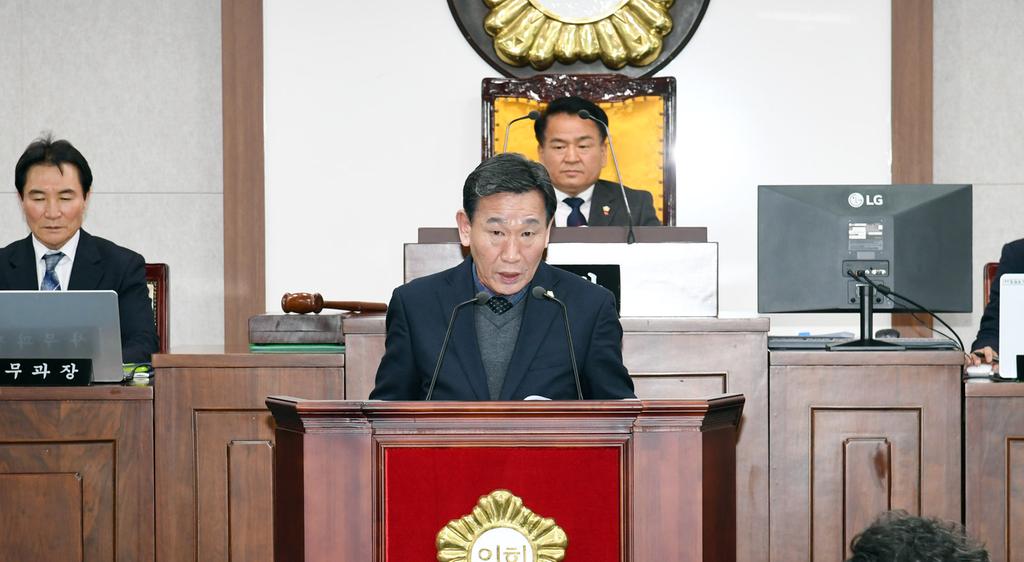 석만진의장은 회의를 마무리하면서 “예산안과 중요 안건들을 세심하고 열정적으로 심사하고 충실한 답변으로 임해준 의원들과 집행부 모두 노고가 많았다”면서 “다사다난했던 2019년을 잘 마무리하고 군민 행복도가 한 단계 더 상승하는 2020년을 만들어 가자”고 말했다.