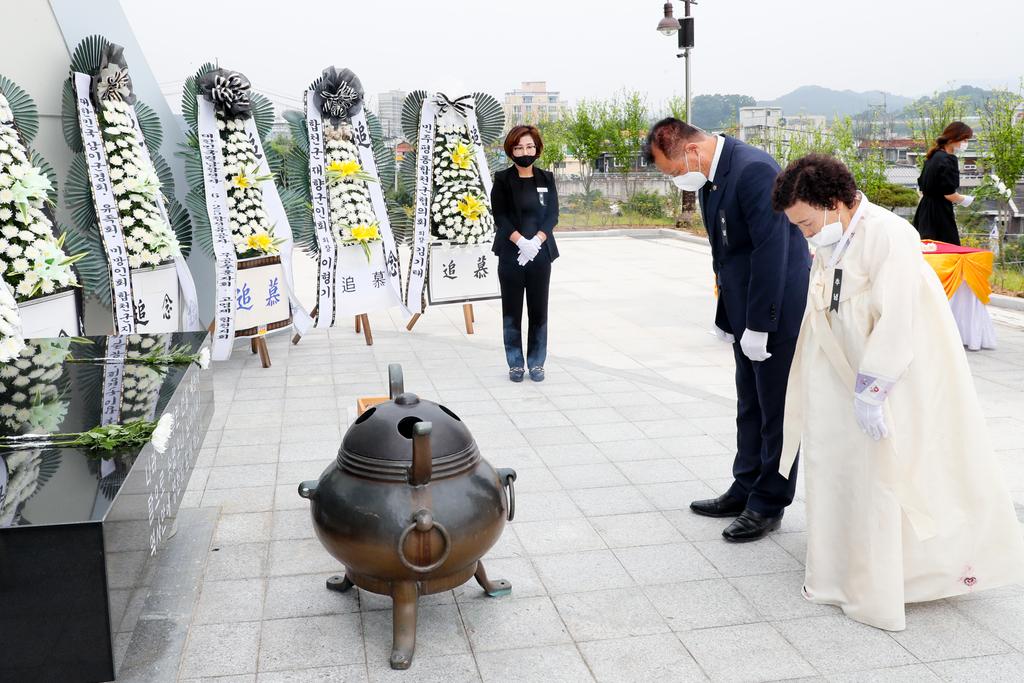 문준희 군수는 “코로나19 감염증 예방을 위해 생활 속 거리두기 지침에 따라 참석인원은 최소화하여 추념식을 거행하지만, 나라를 위해 숭고하게 희생하신 순국선열과 호국영령들의 애국정신을 받들어 국가유공자와 보훈가족들이 더 존경받고 예우 받는 사회가 되도록 노력하겠다”고 말했다.