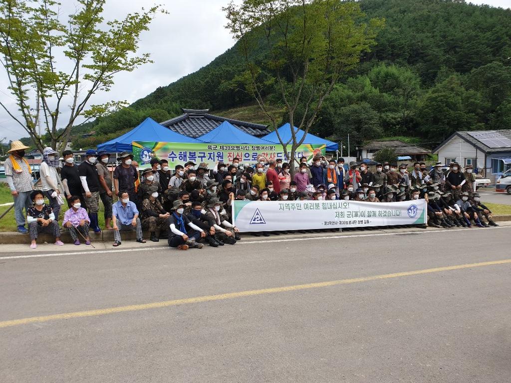 28일, 육군 39보병사단은 지난 8일 집중호우로 침수피해를 입은 합천군 쌍책면 건태마을 일대의 수해복구 대민지원 활동을 마무리 했다. 13일부터 시작하여 2주간 이루어진 대민지원에는 하루 200명 이상의 장병들이 투입되어 쌍책면 건태마을 민가와 비닐하우스 단지에서 피해복구 활동을 펼쳤다.