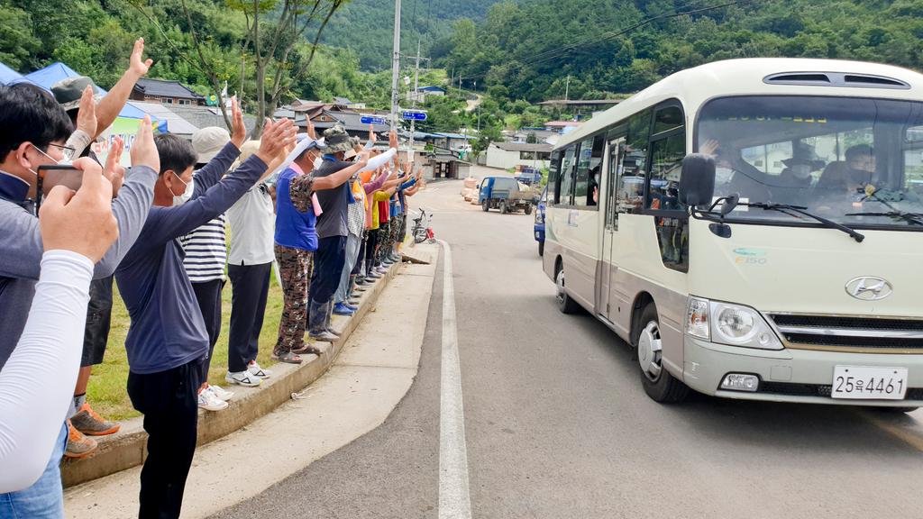 연일 이어진 폭염경보에도 불구하고 코로나19의 전국적 재 확산 추세로 인해 마스크를 벗지 못하는 열악한 상황 속에서 몸을 아끼지 않고 헌신하여 주민들의 칭송을 받았으며, 28일 대민지원을 마치는 날에는 간단한 환송식을 가지는 등 그간의 노고에 고마워했다.
