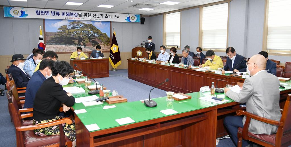 합천군의회(의장 배몽희)는 9월 22일 오전 의회 간담회실에서 합천댐 피해보상 대책위원회 활동을 위한 전문가 초빙교육을 실시했다. 이 자리에는 문준희군수를 비롯한 집행부 관계자와 주민 등 30여명이 참여했다.