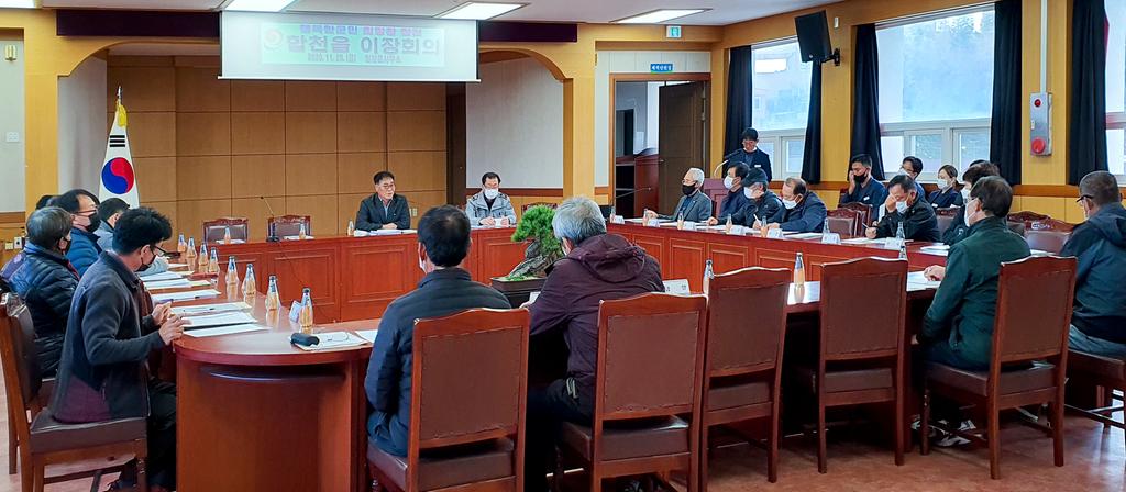 합천읍(읍장 김해식)은 지난 20일 읍사무소 3층 회의실에서 군의원을 비롯한 중부 파출소장, 합천 농협장 등 관내 기관사회단체장이 참석한 가운데 11월 이장회의를 개최했다.