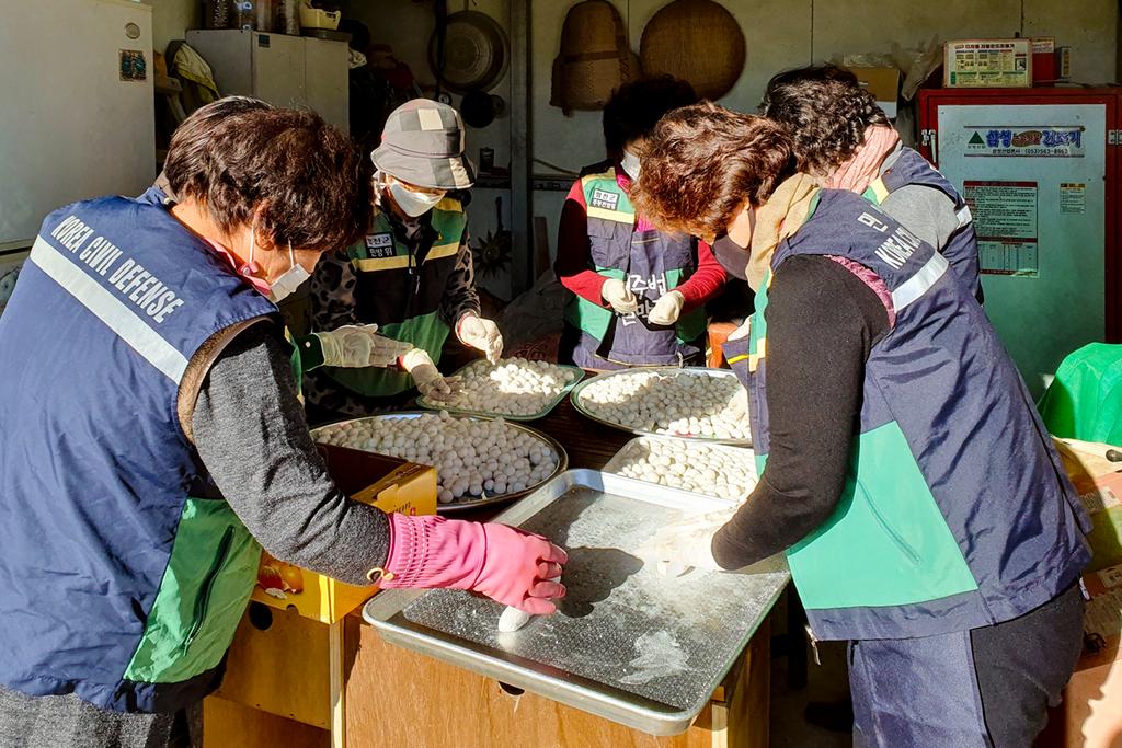 합천군 덕곡면 주부민방위 기동대(대장 차기숙) 대원 20명은 지난 17일 덕곡면 포두마을에서 다가오는 동지를 맞아 독거 어르신께 팥죽을 만들어 전달하는 봉사활동을 펼쳤다.