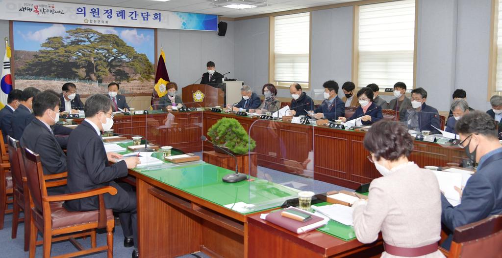 합천군의회(의장 배몽희)는 16일 오전 3월 정례간담회를 개최하여 「3월 군정주요업무계획」과 「합천군 공모사업 운영방안」 등 군정 현안에 관해 실국장 및 담당부서장으로부터 보고를 청취했다.