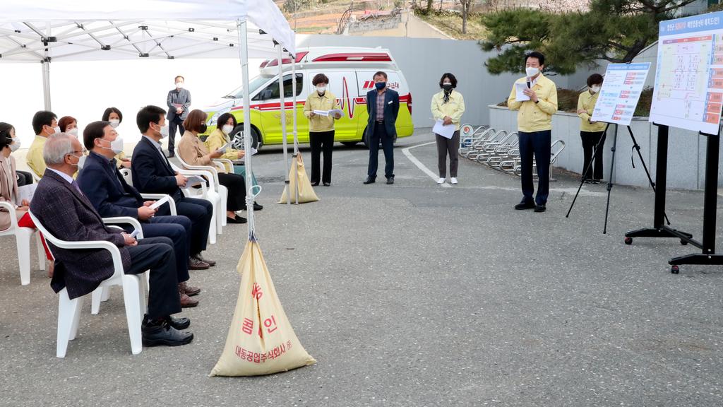 한편, 훈련 전 과정을 지켜본 문 군수는 “ 코로나19를 극복하는 방법은 예방접종이 최우선이라며 집단면역을 조속히 형성하여 예전의 일상으로 돌아갈 것을 간절히 기원한다”고 전하며 오후 2시에는 보건소 예방접종실에서 2분기 백신 접종 계획에 따라 지역재난안전대책본부 소속 공무원들과 함께 아스트라제네카 백신을 공개적으로 접종받았다.