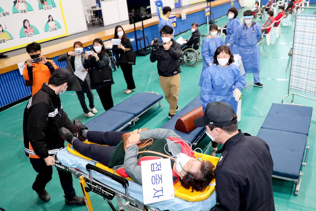 이번 모의훈련에서는 백신 준비, 예진표 작성, 예진 및 예방접종, 전산등록, 이상반응 모니터링, 응급 이송 등 코로나19 백신 예방접종센터의 운영절차 및 인력, 백신 관리능력의 전 과정을 점검하였다.