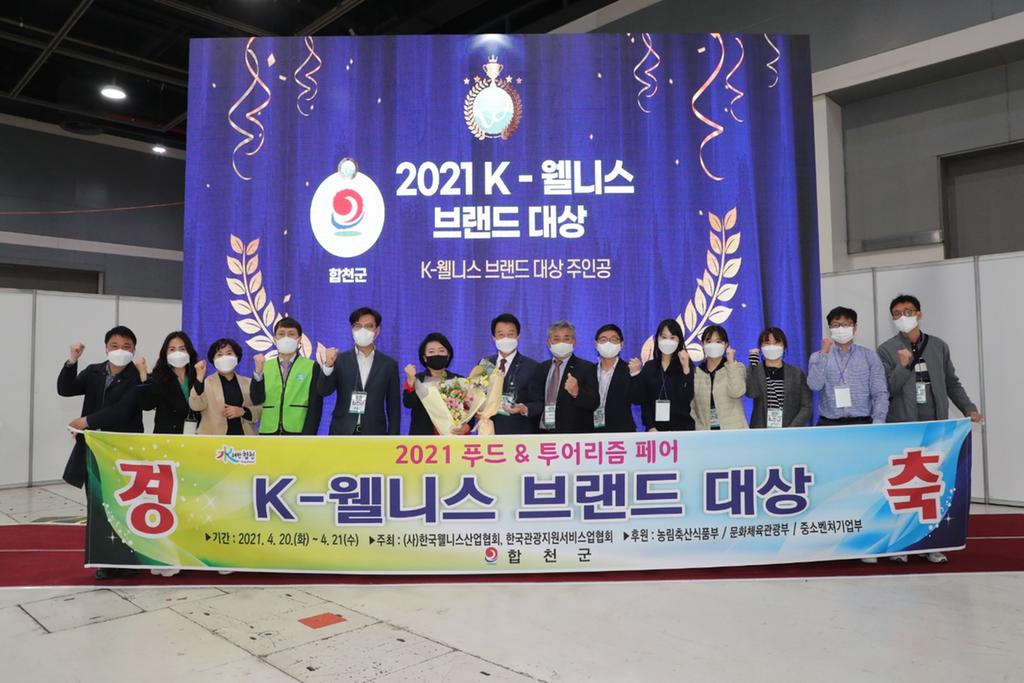 합천군(문준희 군수)은 4.20.(화)~ 21.(수) 양일간 서울 at센터에서 진행된 2021 K-웰니스 푸드&투어리즘 페어에 참가해 2021 K-웰니스 브랜드 대상을 수상했다고 밝혔다.