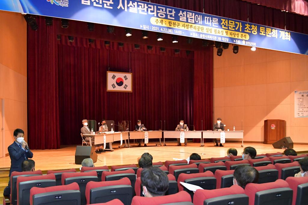 합천군의회(의장 배몽희)는 지난 22일 오후 2시 군 종합사회복지관에서 「합천군 시설관리공단 설립에 따른 전문가 초청 토론회」를 개최했다. 토론회에는 코로나19 확산방지를 위한 사회적 거리두기 준수를 위해 군민과 관계 공무원, 군의원 등 100명 이하로 참석을 허용했다.