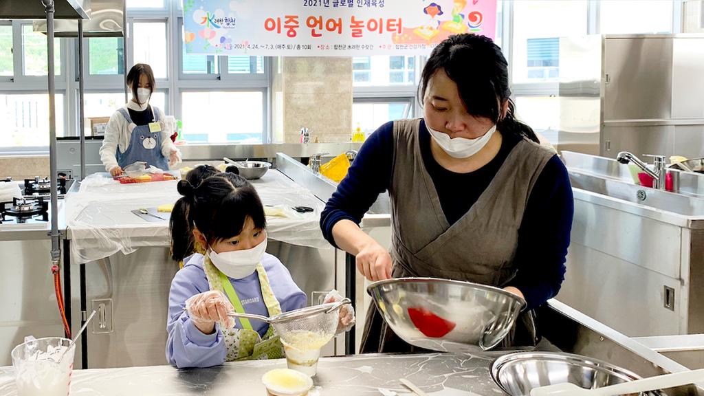 합천군(군수 문준희) 건강가정다문화가족지원센터는 지난 4월 24일부터 7월 3일까지 매주 토요일 총 10회에 걸쳐 키즈 베이킹을 접목한 이중 언어놀이터 교육을 다문화가정 자녀 10명을 대상으로 실시 한다.