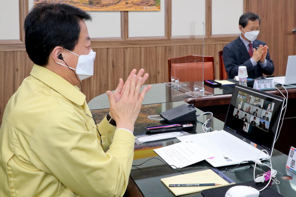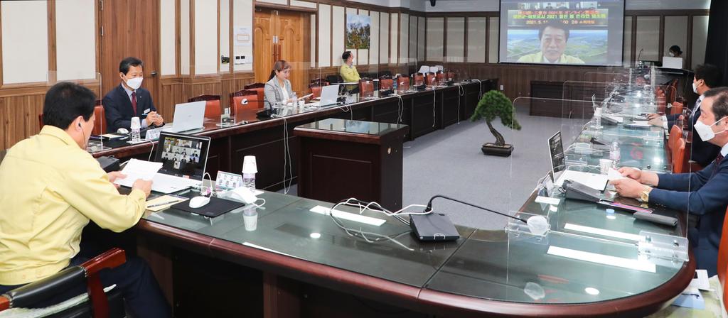 합천군(군수 문준희)은 지난 11일 군청 2층 소회의실에서 국제자매결연도시인 일본 미토요시와 온라인 영상회의를 개최하여 코로나 발생이후 1년 반 만에 만나 양 도시 근황과 담소로 나누었다.