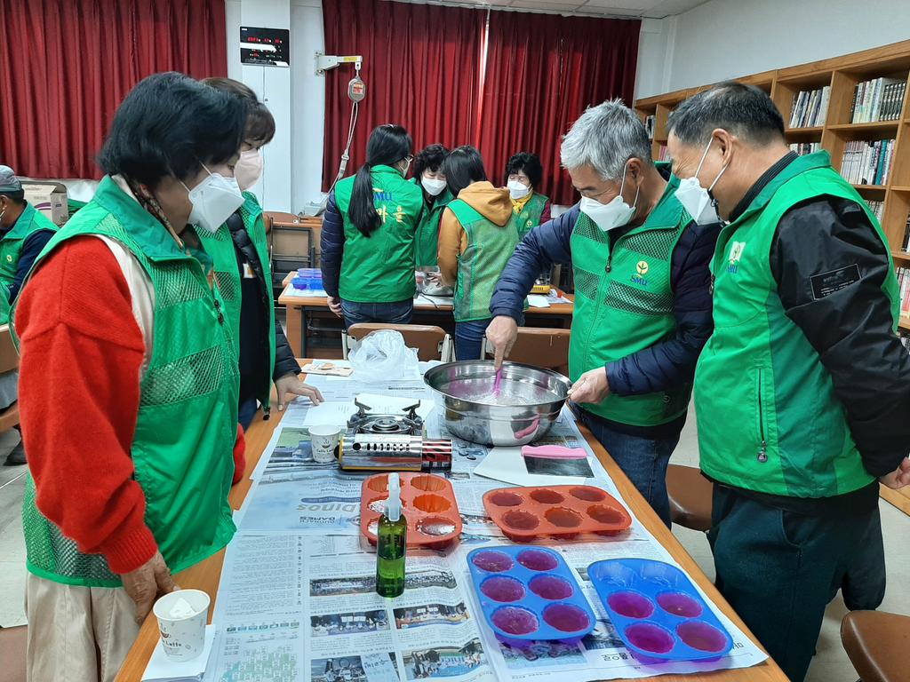 새마을지회 회의실에서 열린 행사는 2주간 화요일, 목요일 총 4회에 걸쳐 진행되며, 가야공예협회 박수현 강사로부터 친환경 주방세제, 미용비누, 다육이화분과 냅킨공예, 라탄바구니 등의 각종 공예작품을 배우고 만드는 시간을 가진다.