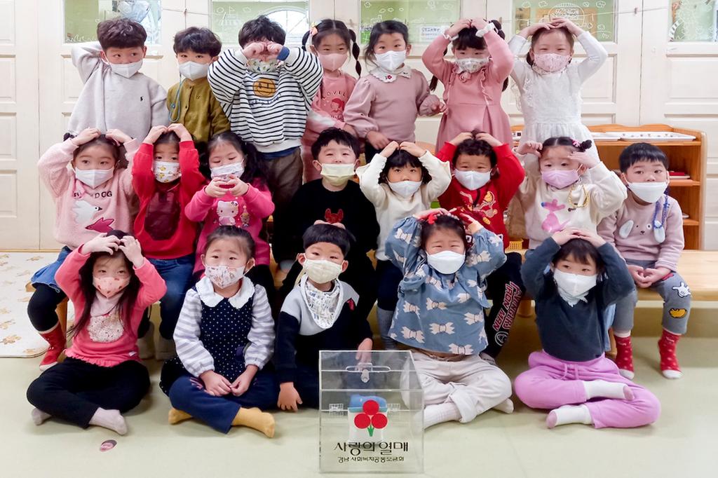 합천군 합천읍 소재 해맑은어린이집(원장 김복희) 4세반 원생 25명이 25일 합천군에 불우이웃돕기 성금 23만 1천원을 기탁해 잔잔한 감동을 주고 있다.