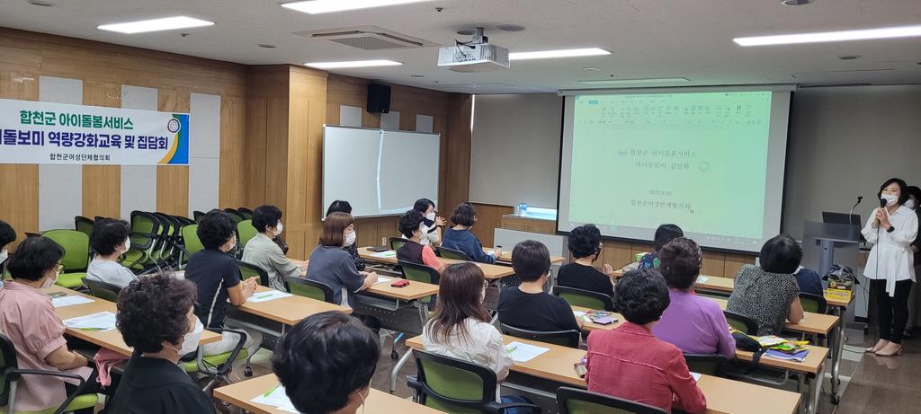 합천군여성단체협의회(회장 이정임)는 19일 종합사회복지관 5층 다목적실에서 아이돌보미 26명을 대상으로 2022년 아이돌보미 역량강화교육 및 집담회를 개최했다.