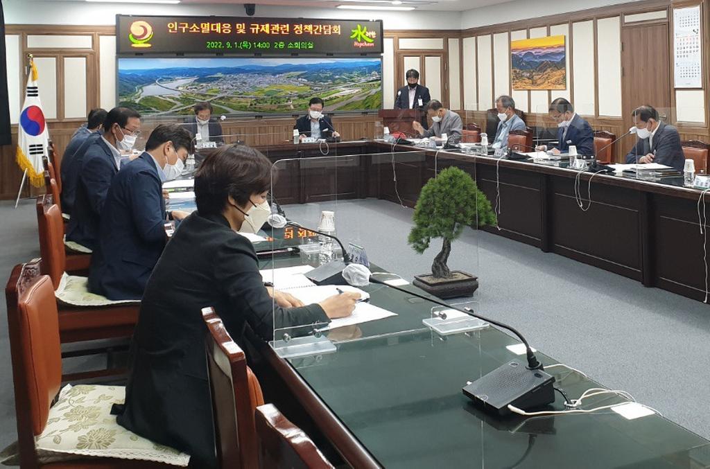 합천군(군수 김윤철)은 지난 1일 행정안전부 관계자 등과 군청 2층 소회의실에서 인구감소에 따른 합천군의 상황과 지역에서 필요한 정책을 제안하는 정책간담회를 개최했다.
